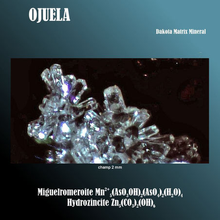 Ojuela est mondialement connue pour la diversité des minéraux arsenatés et carbonatés formés par oxydation supergène des sulfures :